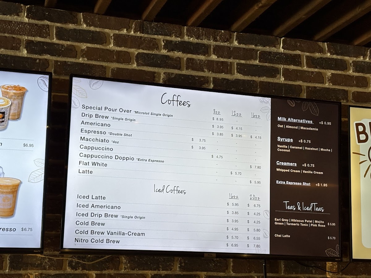 “ Great quality coffee shop! The decor is simple and well thought out. I loved the giant coffee beans bags and specialty coffee machines and bottles. I ordered my coffees to go but the mugs they had were very cute have to try them next time. I ordered a black americano which was good, which I feel you can tell a lot about the coffee used bc it’s not diluted with so maybe things like milks and syrups. Also ordered a vanilla latte with Cubico-clue cold form. I wanted to try the Cubico blue latte but wasn’t sure and they wondered lady taking my order suggested trying the blue as a cold form instead. Loved it will return again and try the other one next time. I love going to different coffee shops for iced coffees instead of the usual fast food ones. ”